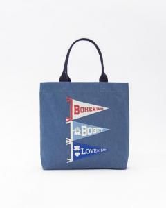 サインボードワッペンパッチワーク ブルーデニムトートショルダーバッグ