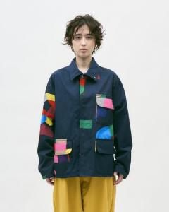 ピースパッチワーク デニムコンビネーションカバーオールジャケット