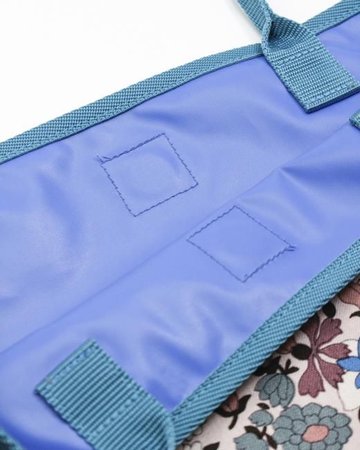 裏面はポリエステル生地にウレタンコーティングを施しています。硬く丈夫な表面は衝撃吸収に優れ、また防水効果があります。