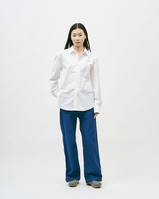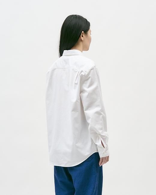 綿100%のシャンブレー素材。上質な白の生地感と光沢が映える一枚です。