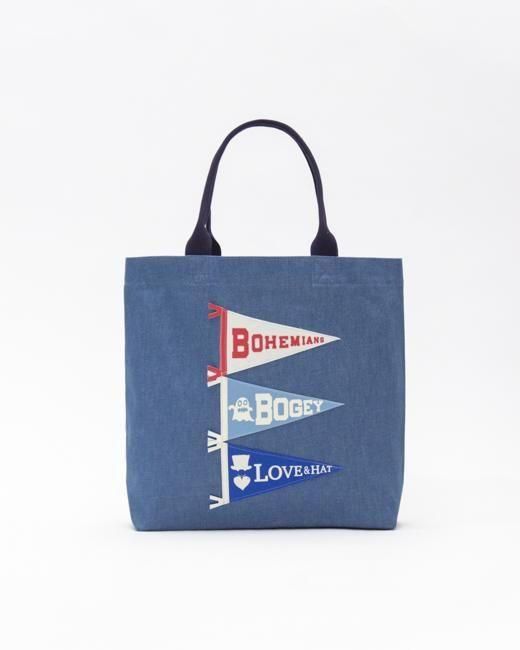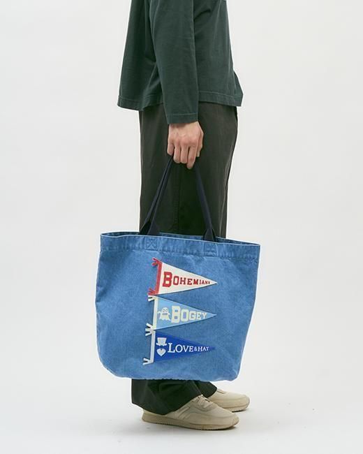 フェルトフラッグワッペンパッチワーク デニムトートバッグ