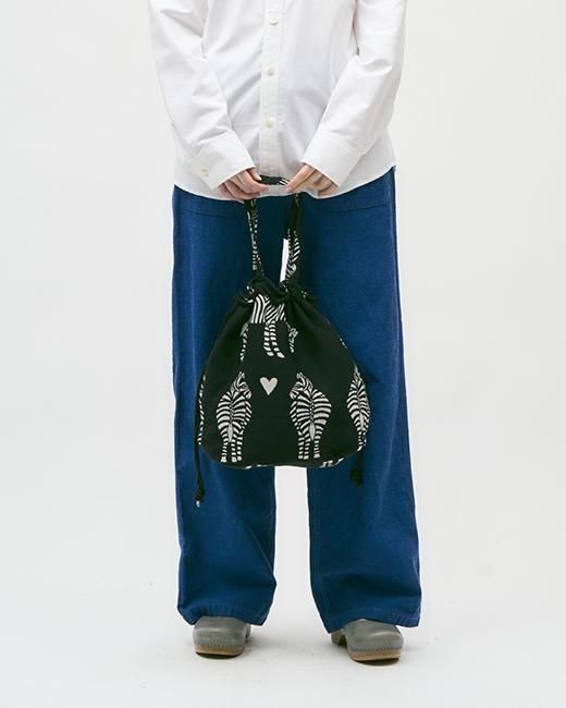 ボヘミアンズオリジナルの巾着型バッグです。荷物の量に応じて絞らずに手持ちのバッグとしても使用できます。内側にポケットが一つ付いていて、小型のウォレットや小物収納が可能です。