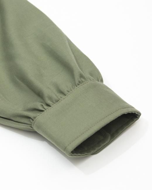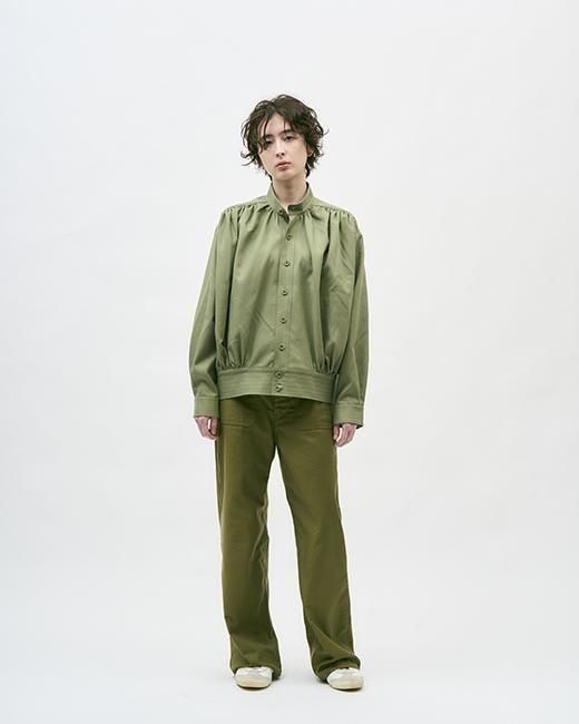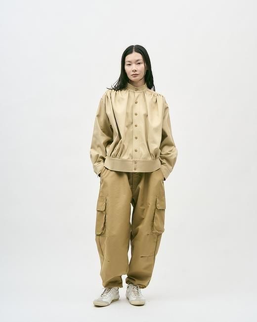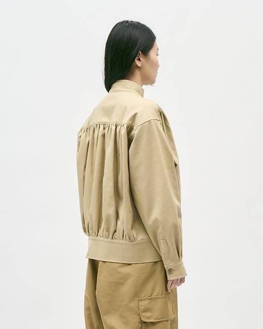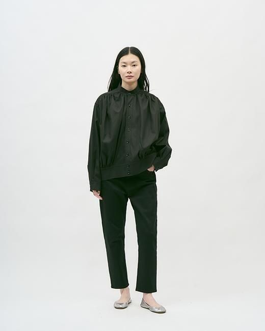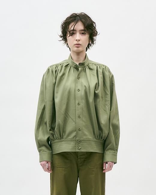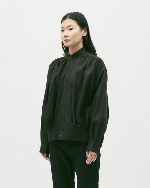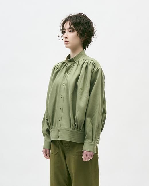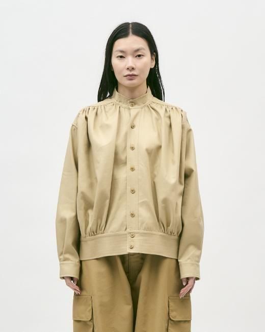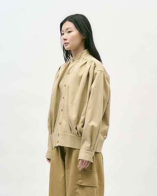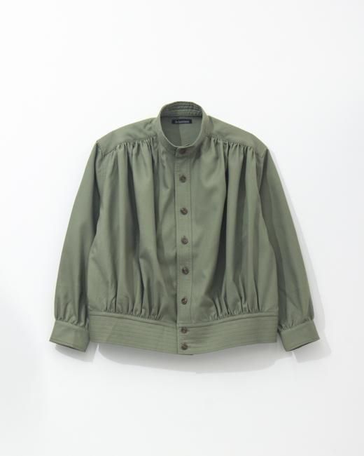 ギャザーたっぷりのゆったりとしたワイドフィットブルゾンシャツです。