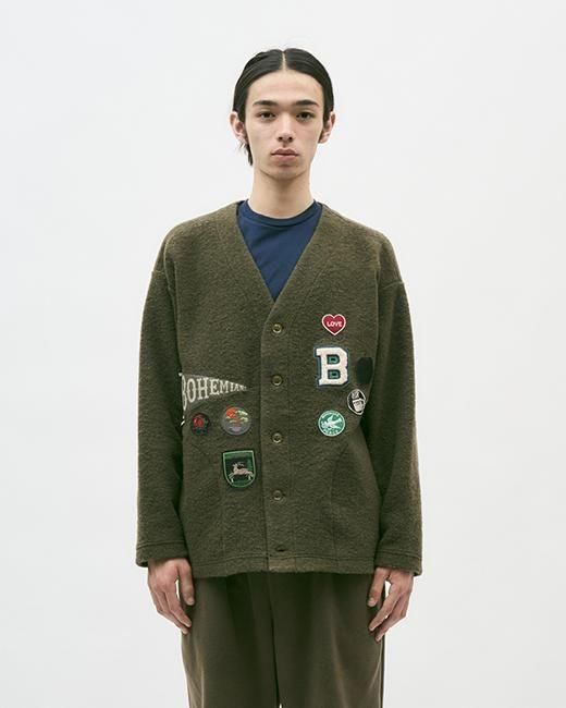 ミックスフラッグ&ワッペン ウールカーディガン