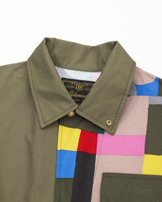 衿先にもスナップを配して、スナップを留めてスタンド衿にもできます。