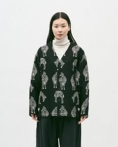 ジャガードの織でゼブラ柄を作りました。裏地は色が反転したゼブラ柄となります。