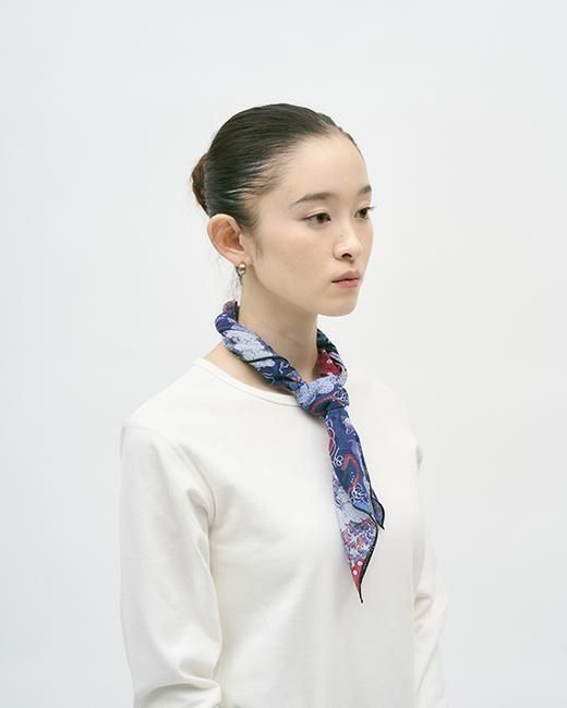 ハンカチとして普段の生活にもご使用いただけます。また、首元などに巻き、コーディネートのアクセントとして最適な1枚です。